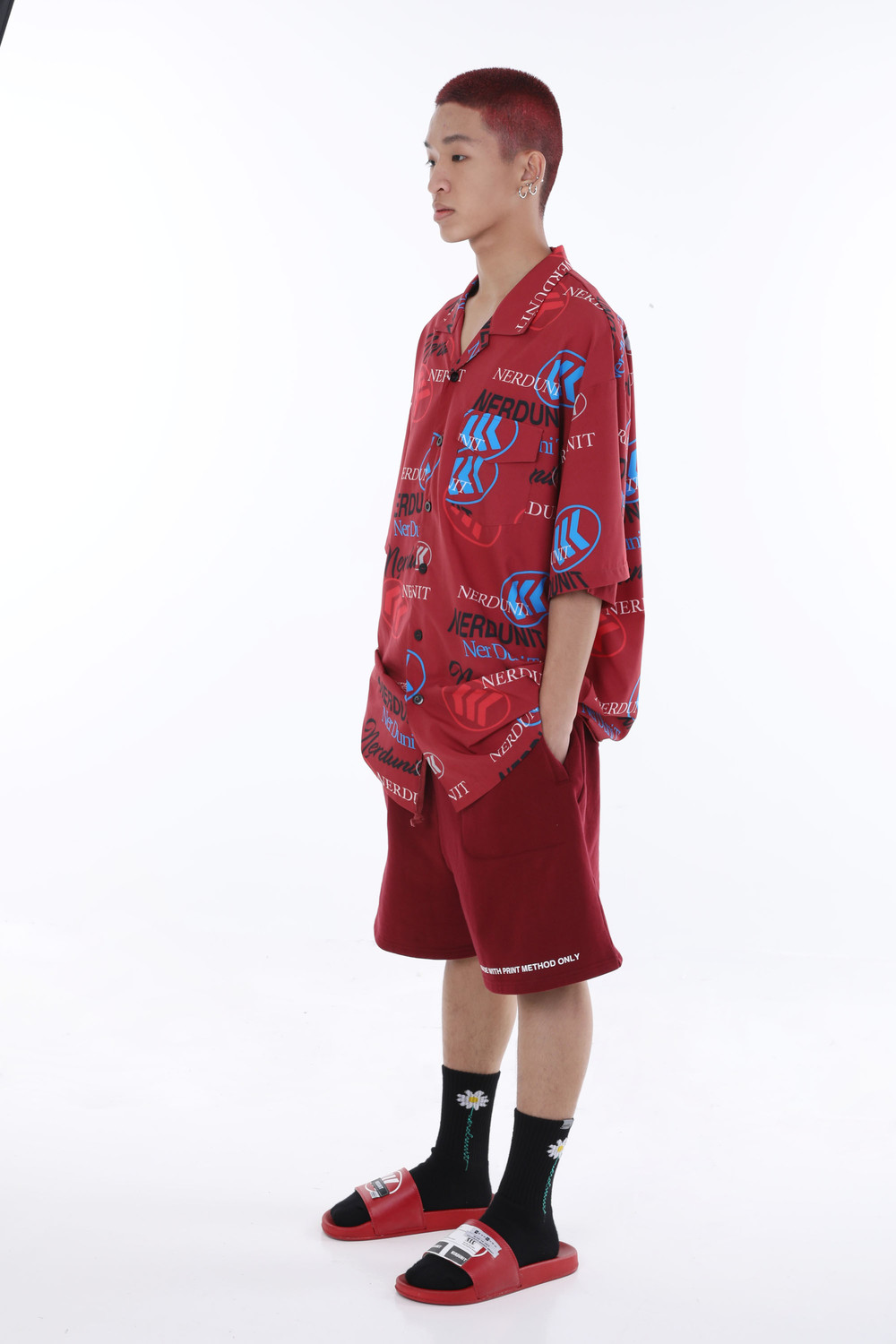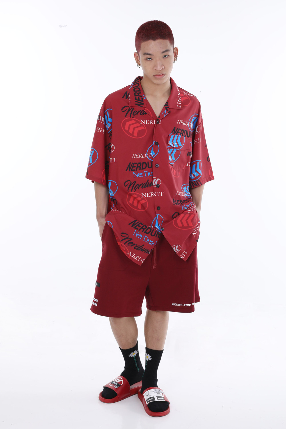 multiple colours on a red collar tee, which is the epitome of a fun outfit.